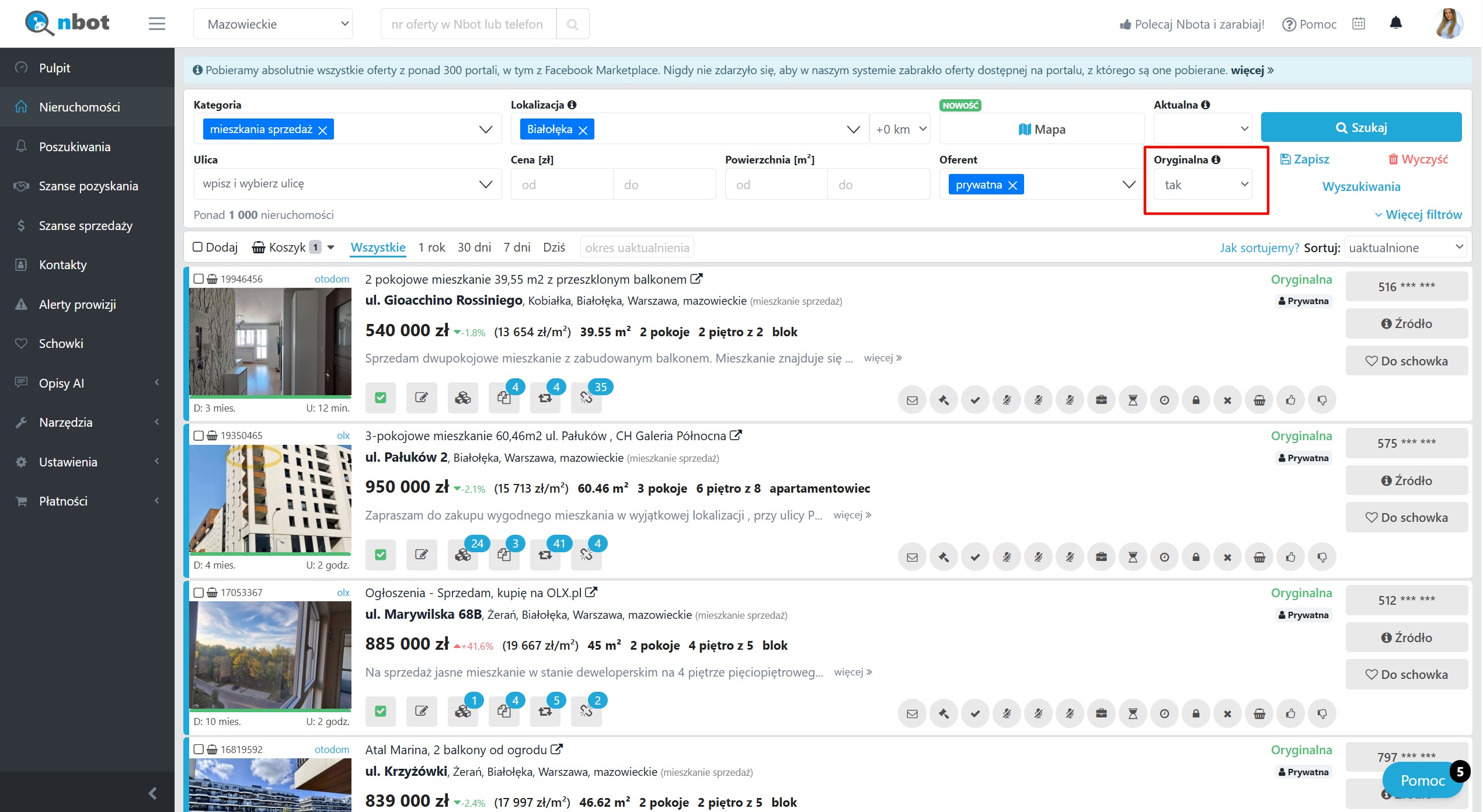 Dzięki temu system wyświetli jedynie te oferty, które zostały pierwotnie dodane na portalu – bez powielonych wersji z innych źródeł. To rozwiązanie pozwala uniknąć sytuacji, w których ta sama nieruchomość pojawia się kilkukrotnie na liście wyników, co ułatwia przeglądanie i analizowanie unikalnych ogłoszeń.