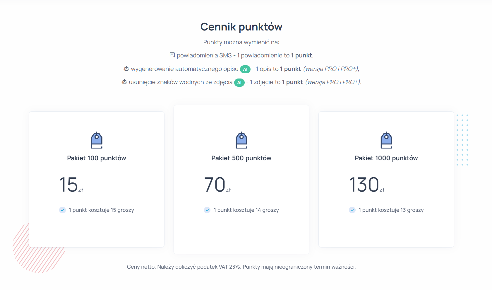 Dlaczego pobieramy opłaty za usługi takie jak powiadomienia SMS, automatyczne generowanie opisów przez AI oraz usuwanie znaków wodnych ze zdjęć przez AI?