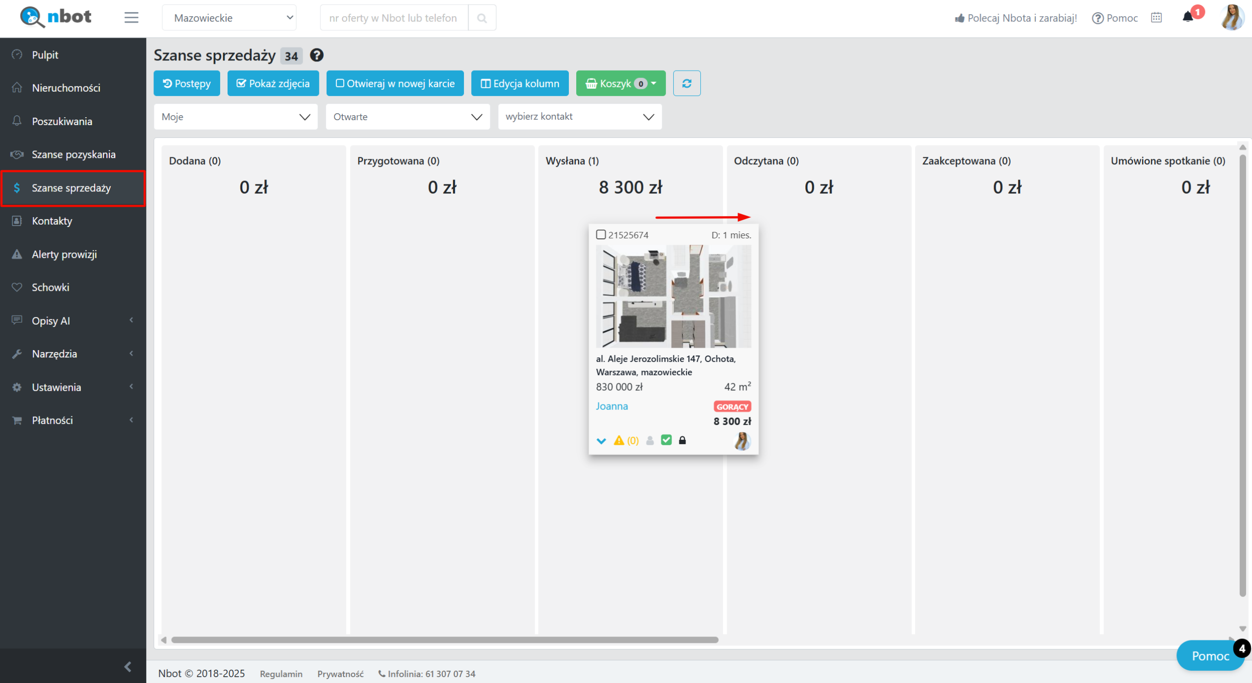 Jeśli oferta została wysłana z poziomu Szans sprzedaży, system dodatkowo automatycznie przenosi szansę do kolumny „Odczytana” w momencie, gdy klient otworzy przesłaną ofertę. Nie musisz robić tego ręcznie - wszystko dzieje się automatycznie, co ułatwia śledzenie postępów w pracy z klientem.