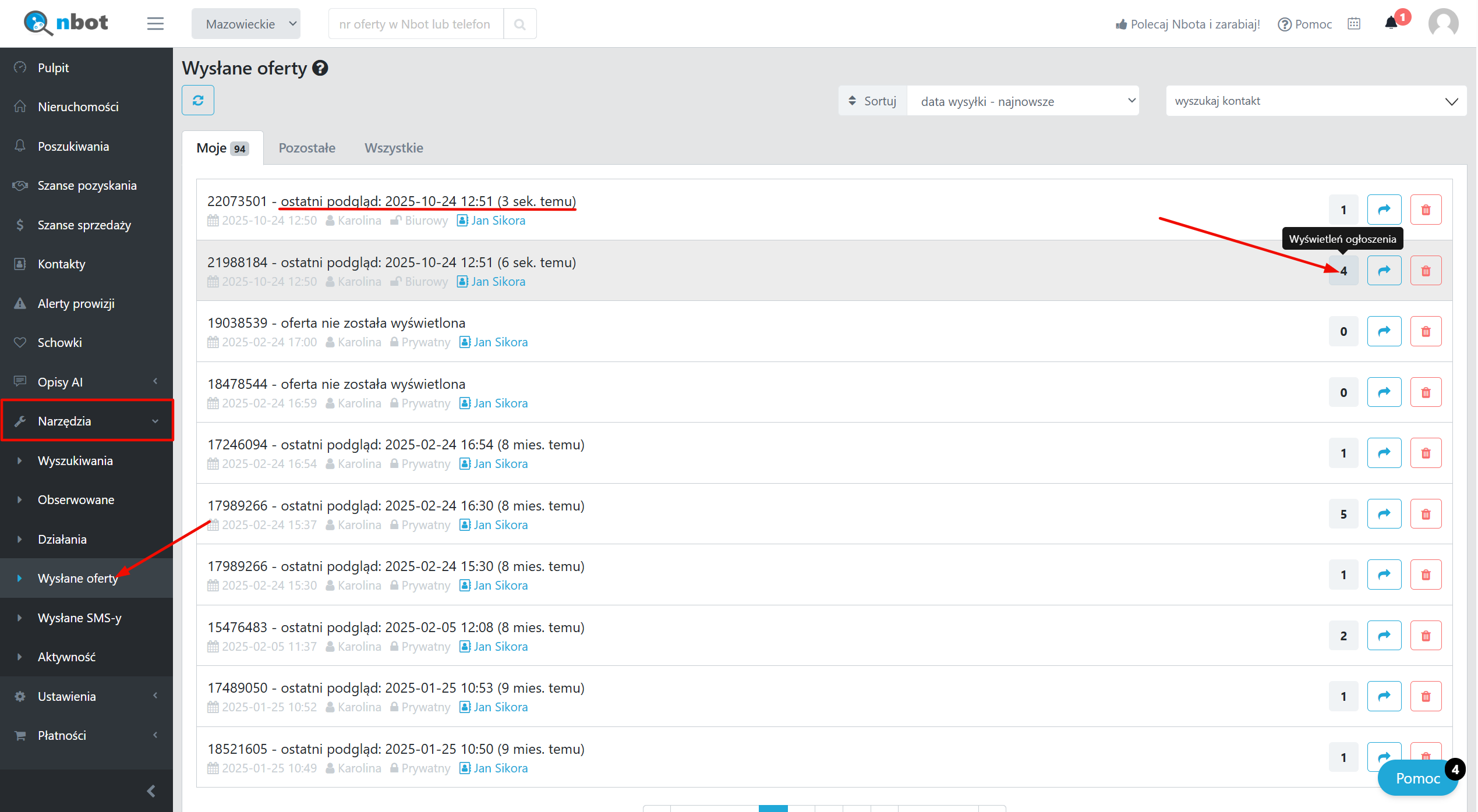 W systemie Nbot możesz w łatwy sposób sprawdzić, czy klient zapoznał się z przesłaną ofertą nieruchomości. Każda wysłana oferta (tzw. Noferta) działa jako oddzielna strona internetowa, co pozwala śledzić aktywność odbiorcy.